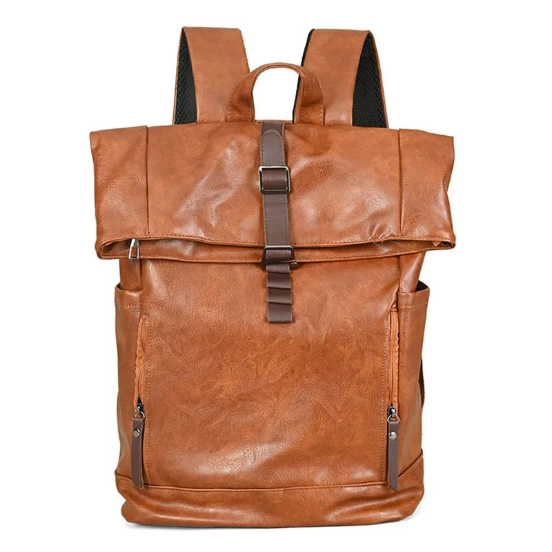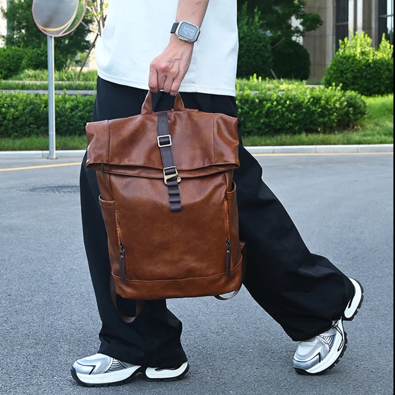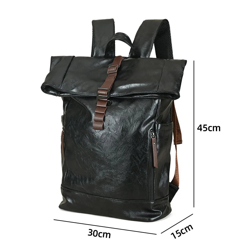 PU leather laptop travel backpack. Can hold 15.6 inch laptop.