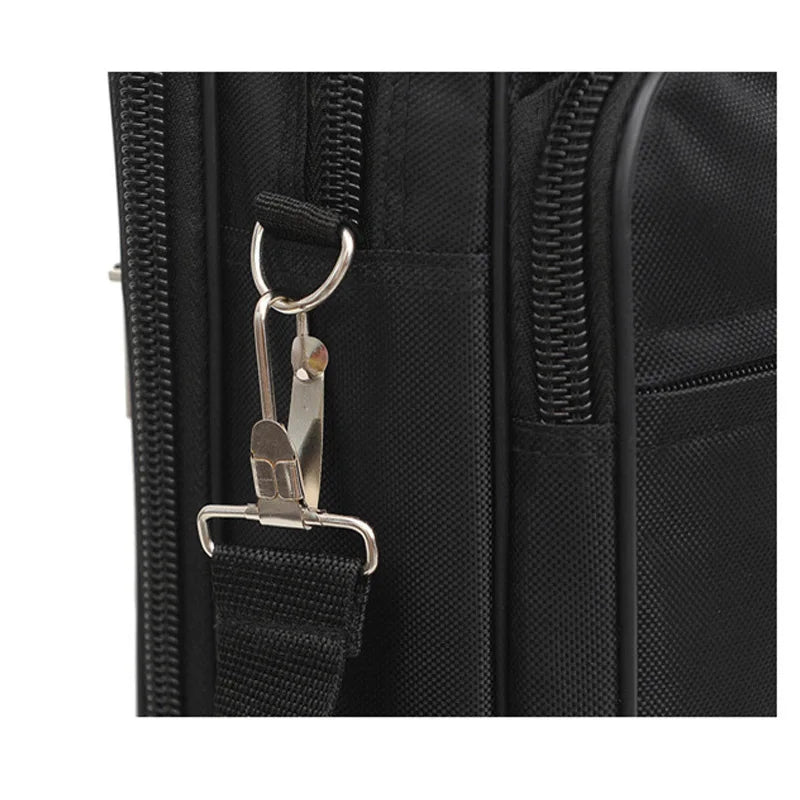 Laptop briefcase with 15.6 inch laptop compartment and detachable shoulder strap.